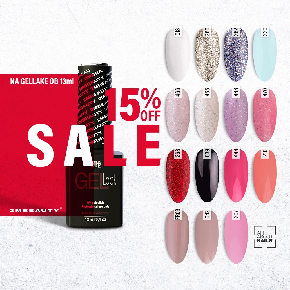 Se eno presenečenje! Od 17.06. do 20.06. podarjamo 15-odstotno akcijo na 13 ml gelnih lakov, ki jih lahko vidite na sliki! Zdaj je pravi čas, da jih dobite!
