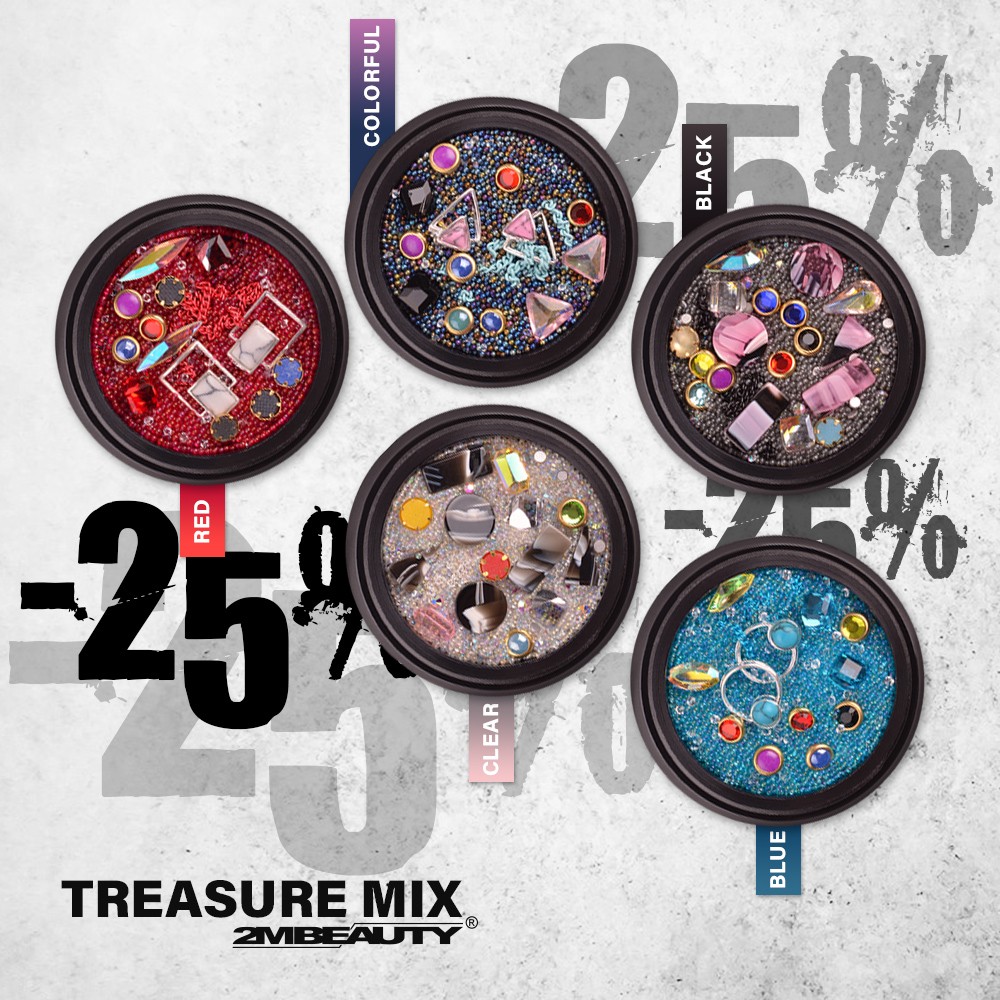 Treasure mix okrase lahko najdete v 5ih različicah. Vsak od njih ima veliko kamenčkov, različnih barv, oblik in velikosti. Vsaka škatlica je pravo presenečenje.