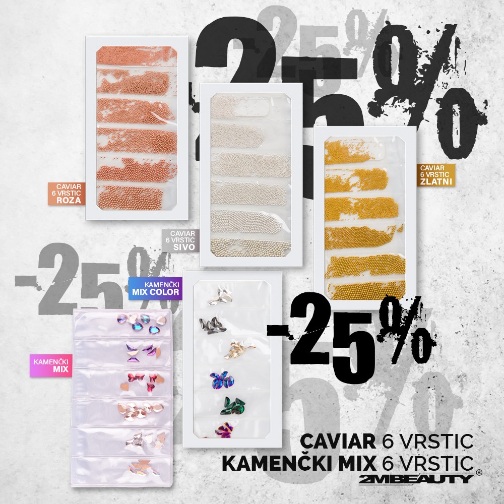 Za bolj elegantne dame priporočamo Caviar kateri lahko najdete v srebrni, zlati ter rosegold barvi, kakor tudi kamenčki mix kateri je sestavljen iz 6 različnih vrst kamenčkov. Izkoristite to fantastično priložnost in nabavite si Božični mix kamenčkov ter prelepo kolekcijo Marble po super ceni.