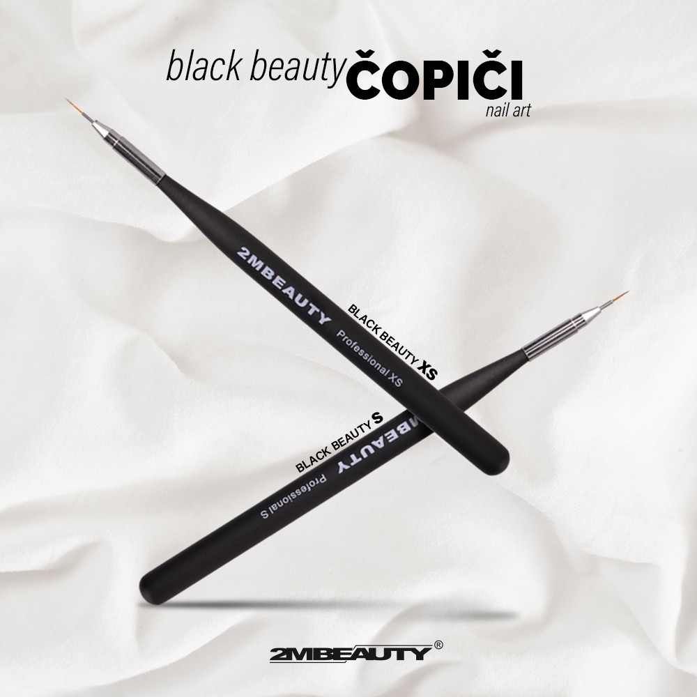 Naše priporočilo za nanos barve pod kutikolo in natančno nanašanje barve ob kožici, so Black beauty čopiči XS ter S. S temi tankimi, natančnimi čopiči bo nanos barve mala malica. Primeren ter kvaliteten materjal, naredi že pol vašega dela.