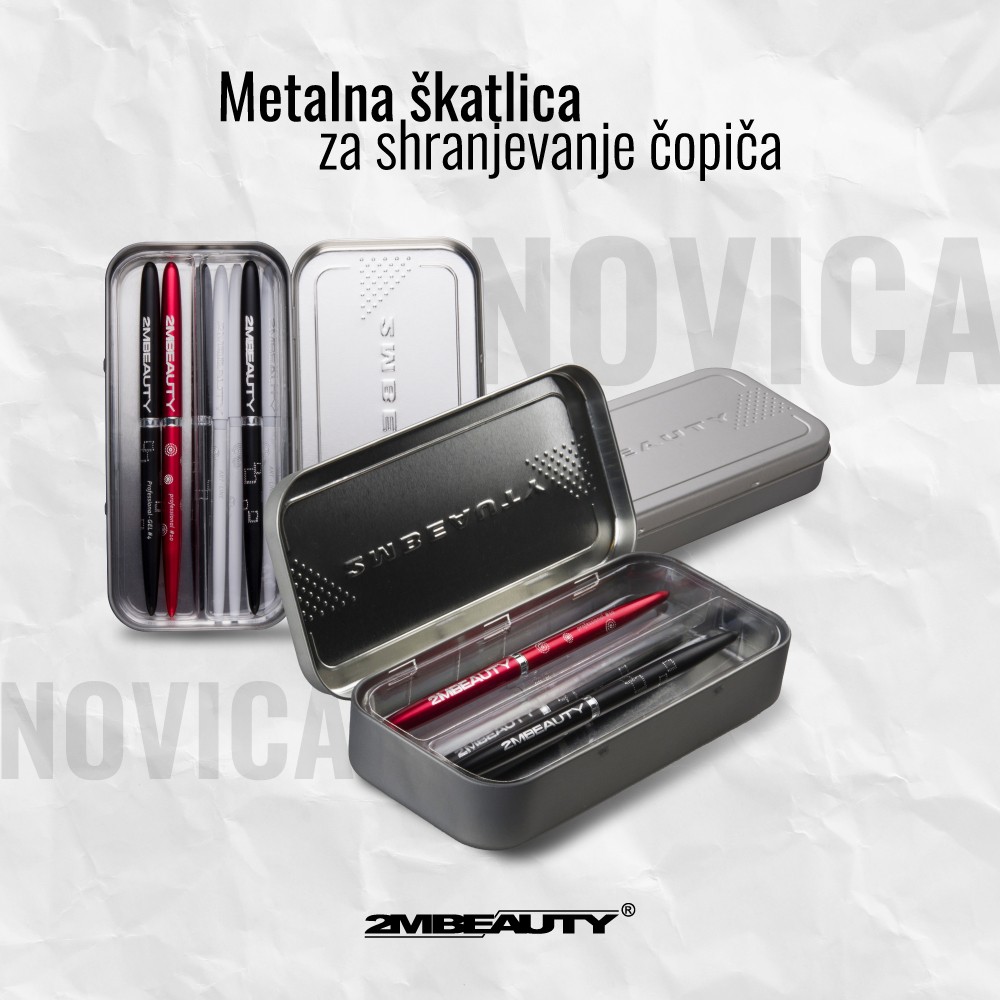 Prelepa novost pri nas, je prav tako ta metalna škatlica za ščetkice prefinjenega dizajna. Kamorkoli boste šle, lahko svoje ščetkice vzamete z seboj, vedoč da so vedno na sigurnem. Izgleda močno, kajne?
