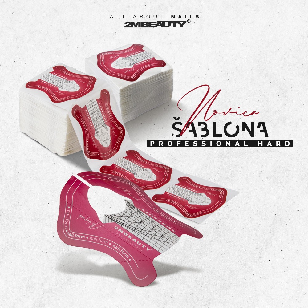 Spoznajte Hard verzijo, vsem znanih Professional Red šablon. Izdelana je iz papirja Premium kvalitete, ki ji omogoča stabilno držanje. Idealna je tako za klasične salonske nohte, kot tudi za ekstremne in posebne oblike nohtov.